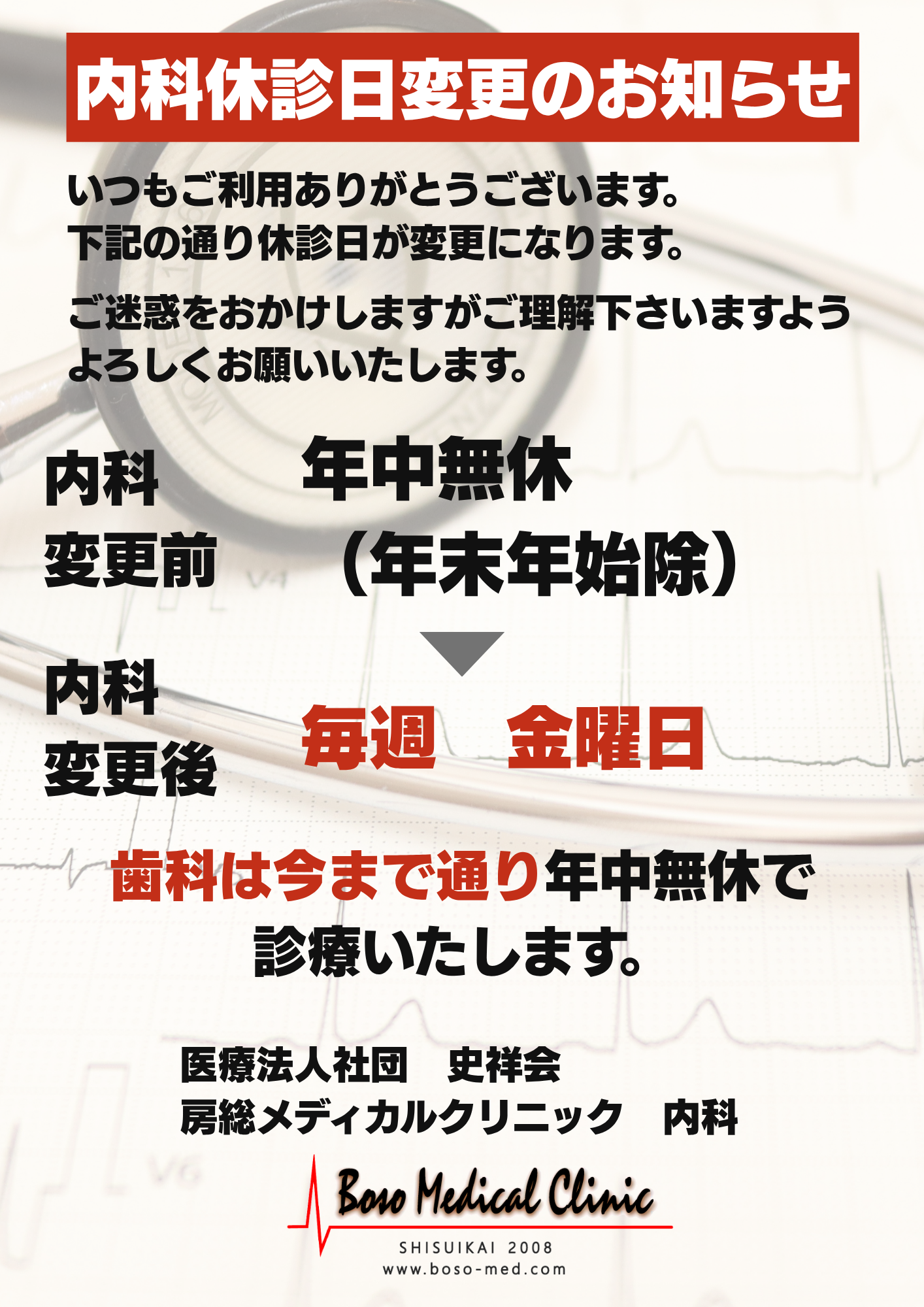 【2025.8月からの内科診療体制について】